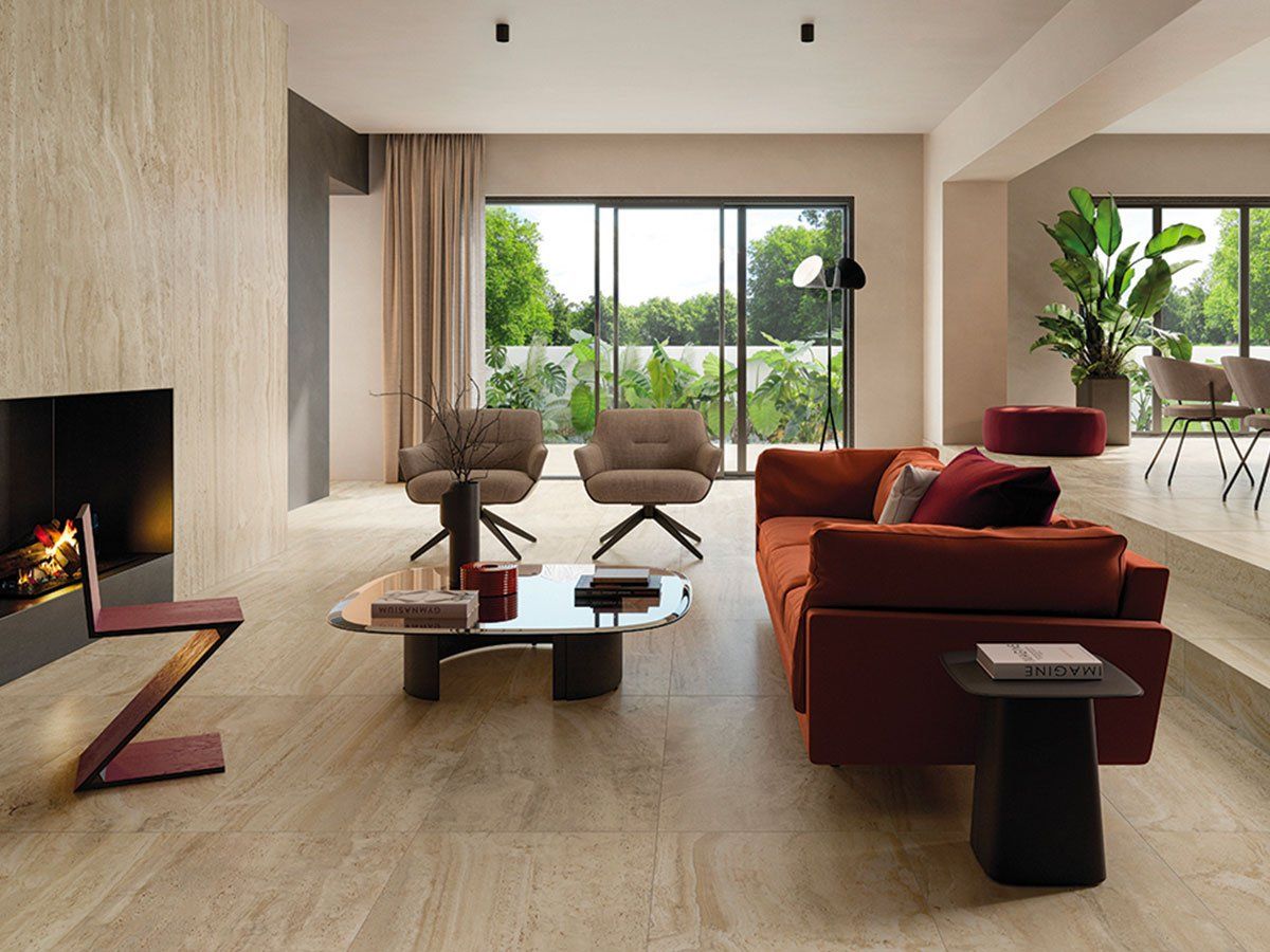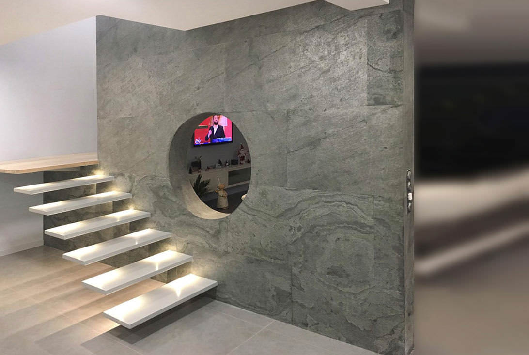 Utilizzando le lastre diventa possibile ricreare varie tipologie di pavimenti e rivestimenti interni con differenti effetti materici che spaziano dal cemento, al metallo, fino alla pietra e al marmo con assoluta continuità, in sintonia con le attuali tendenze dell’interior design.